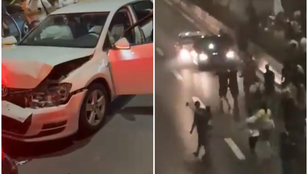 Како се може видети на снимцима, група демонстраната је кренула да прескаче ограду и улази на мост, а том приликом дошло је до судара два возила.