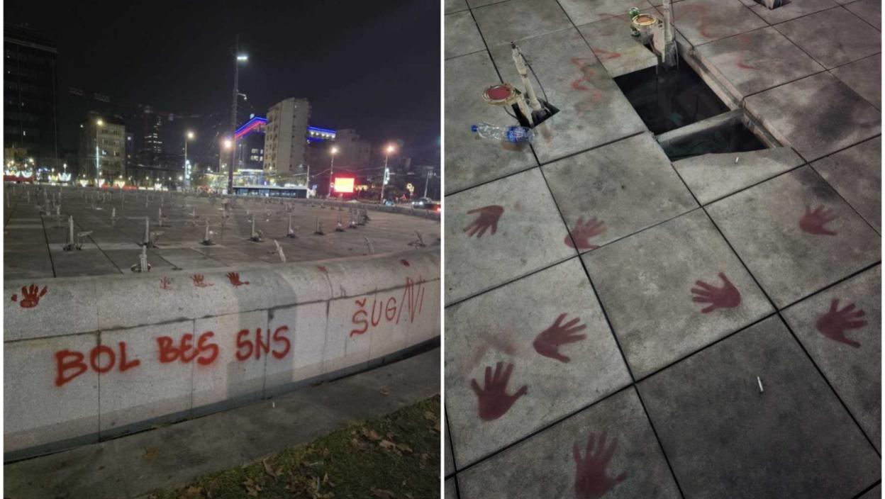 ФОНТАНА НА СЛАВИЈИ ДЕМОЛИРАНА ТОКОМ ПРОТЕСТА! "Украдено 5 рефлектора, поломљено 11, уништене млазнице и сензори, штета већа од неколико милиона динара"