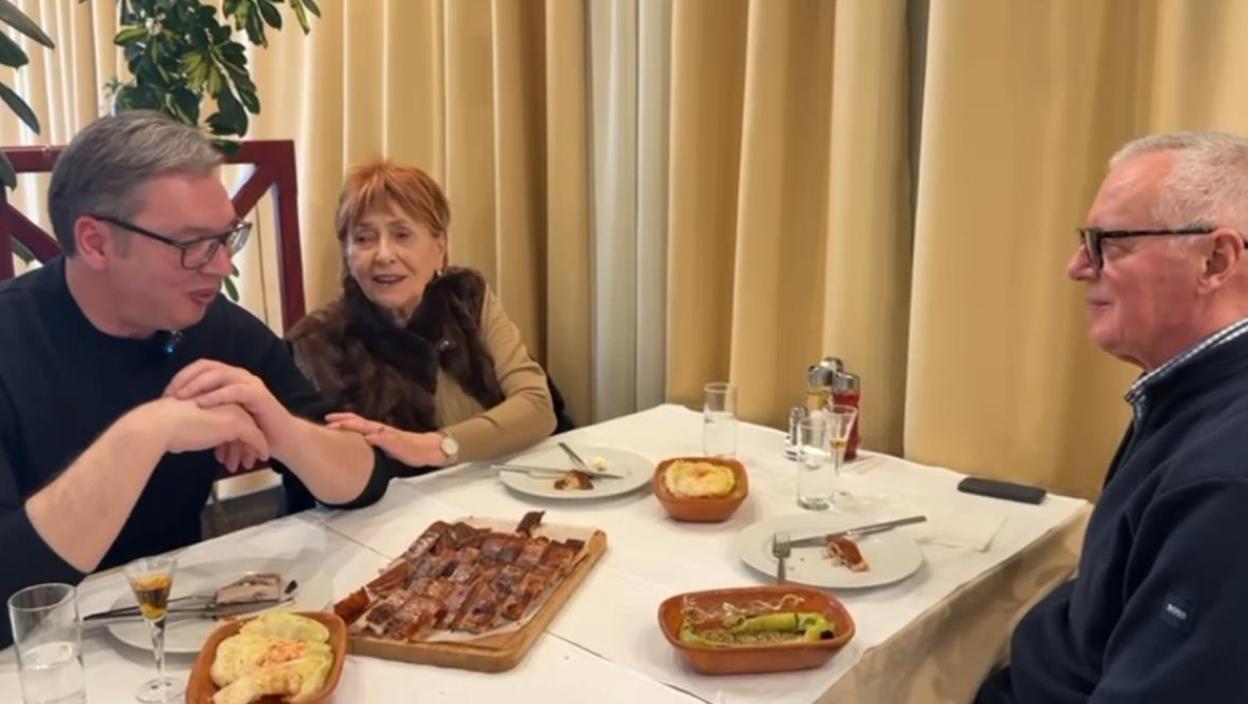 Председник Србије Александар Вучић извео је тату Анђелка и мајку Ангелину у печењару у Борчи, кафану БСК, познату по прасетини и чувеним бајадерама.