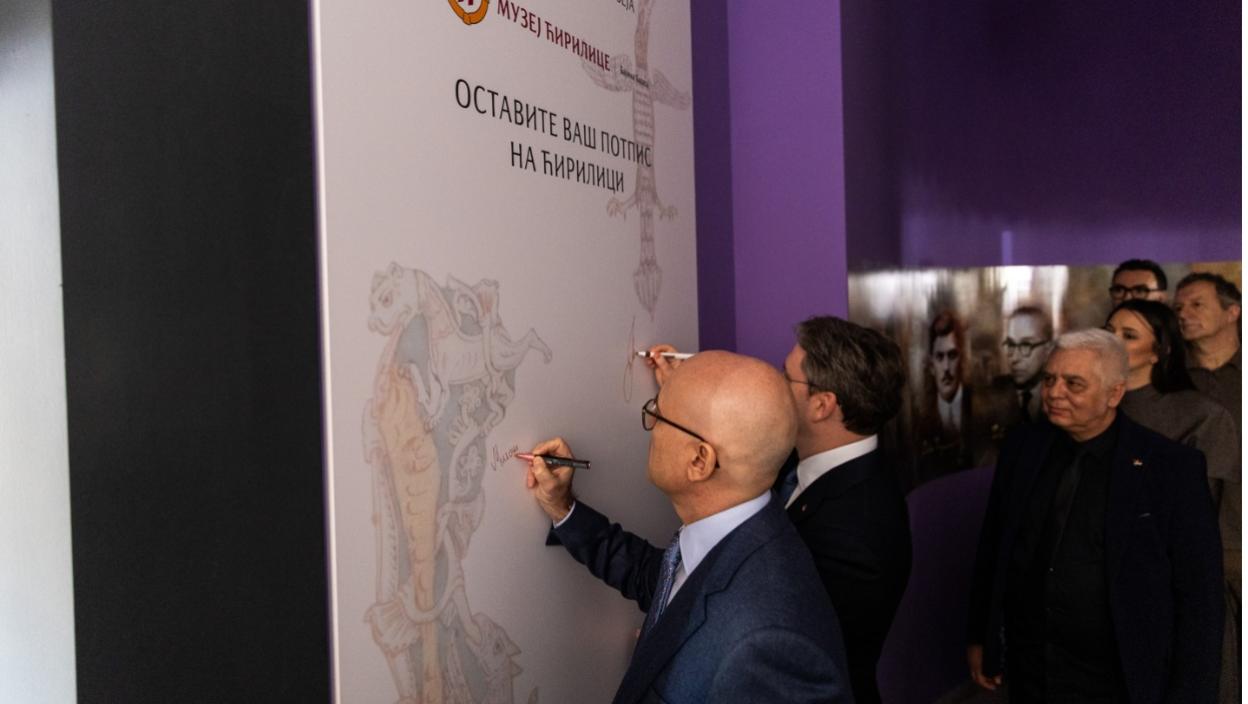 -Ћирилица није прошлост. Она је наша садашњост и наша будућност! Наш најважнији задатак је да сачувамо свој идентитет, да не дозволимо да нам неко уништи прошлост, асимилује нас, обешчасти и обезвреди. Да сачувамо наше српско име! Нека овај Музеј ћирилице у Бајиној Башти буде њен дом, али и инспирација да ћирилица остане живо писмо у нашим школама, институцијама, медијима и у нашем свакодневном животу. Нека она буде вековно сведочанство нашег идентитета и наше крајње победе! - рекао је Вучевић.