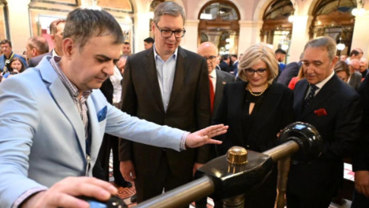 Председник Републике Србије Александар Вучић присуствовао је обележавању 140 година рада Народне банке Србије и отварању иновираног Центар за посетиоце у згради Народне банке у Београду.