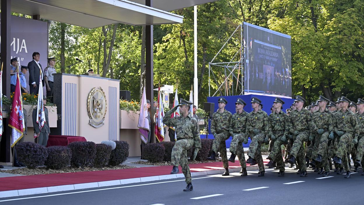 - Тукидид је рекао да је тајна среће у слободи. Данас ви, дивни млади људи, када постајете официри Војске Србије отпочињете најхрабрији посао на свету, који чува нашу слободу и који је заштитник наших живота. Имате један циљ, да сачувате ову земљу од рата. Права снага управо лежи у оној храбрости која одвраћа, мудрости која спречава. То је најсветија дужност коју имате. Велико хвала вашим мајкама, очевима, онима који су овој земљи пружили највише, своју децу, која морају да штите и бране своју Србију. Живимо у свету у којем нико ни о коме не води рачуна и сви само гледају како да се дочепају нове територије. У таквом свету морамо да сачувамо и одбранимо нашу Србију. Сувише смо мали да би могли и да би смели било коме да претимо али смо довољно храбри и снажни, имамо вас, да свима можемо да кажемо не дамо на нашу Србију. Сваког дана мораћете да радите и учите много више. Хвала за сву љубав, посвећеност, за све што дајете Србији. Да помогнемо да имате већа примања, најбољу опрему... Ми ћемо да славимо само наше јединство али ћемо и показати колико смо боље опремљени и данас, да своју отаџбину сачувамо, него што смо били пре 26 година. Знање да вам одузме не може нико! Живела Војска Србије, живела Србија - поручио је председник.