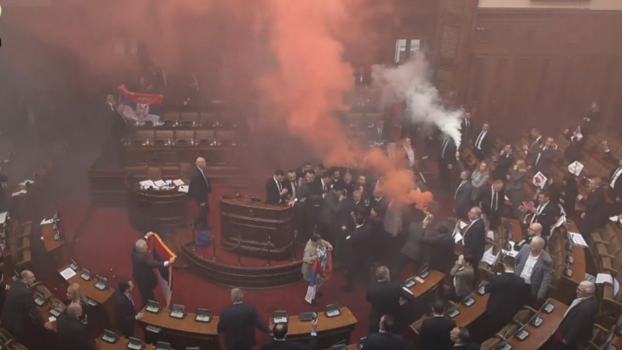 Страшне сцене у Скупштини Србије: Министар Синиша Мали погођен димном бомбом
