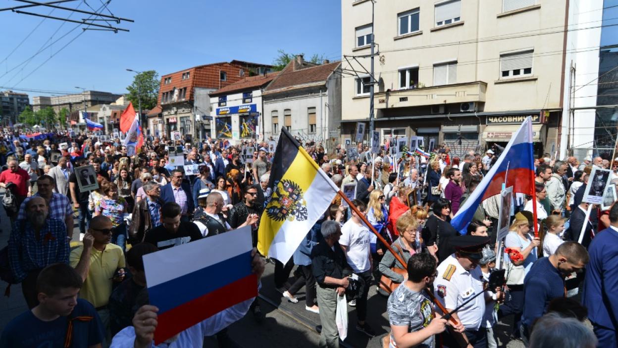 Свечано обележавање Дана победе над фашизмом уприличено је данас уз почасни марш "Бесмртни пук" у центру Београда.