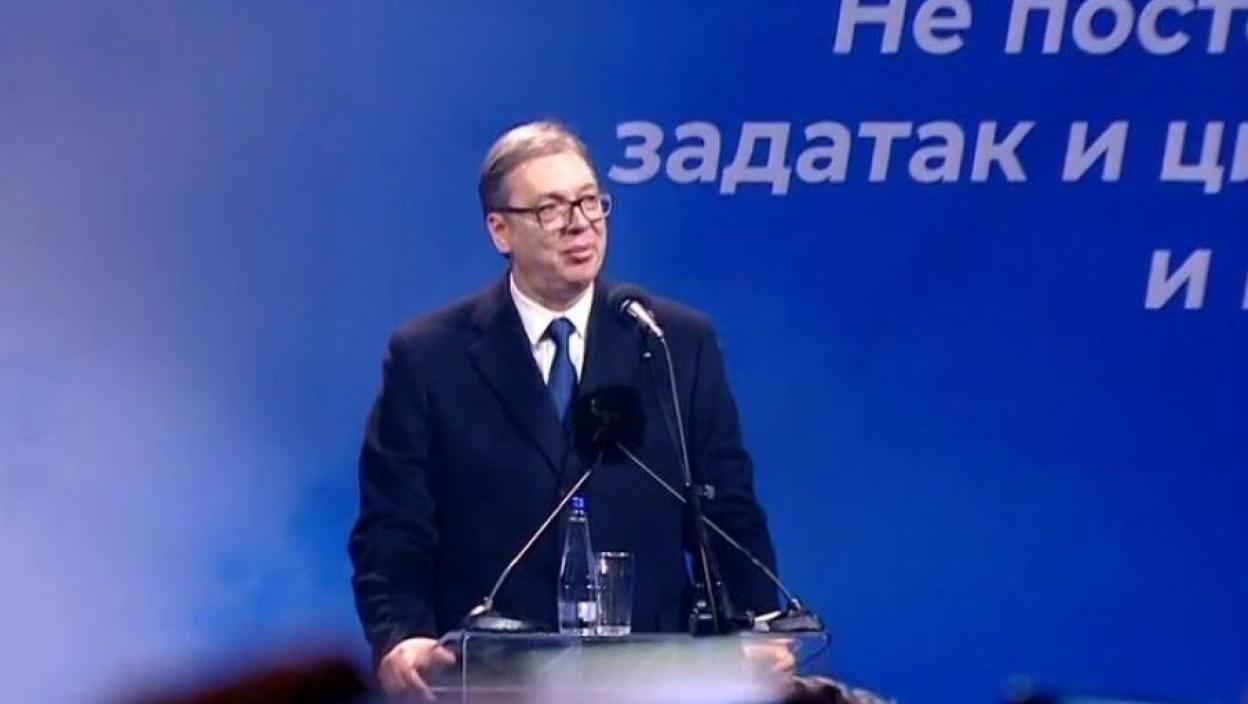 Окупљенима се обратио и председник Републике Србије Александар Вучић, који је дочекан громогласним аплаузом.