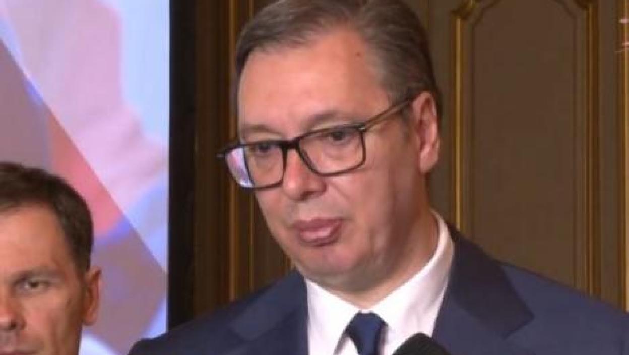 Александар Вучић обраћа се новинарима након важних састанака у Паризу.