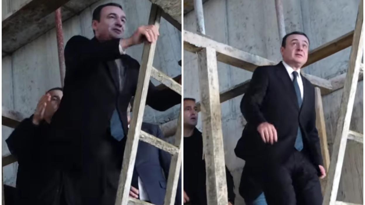 Где си кренуо, Аљбине? Мердевине умало непремостива препрека за премијера лажне државе! Згрчио се, па у страху ИЗГОВОРИО само "Не пуштај ме" (ВИДЕО)