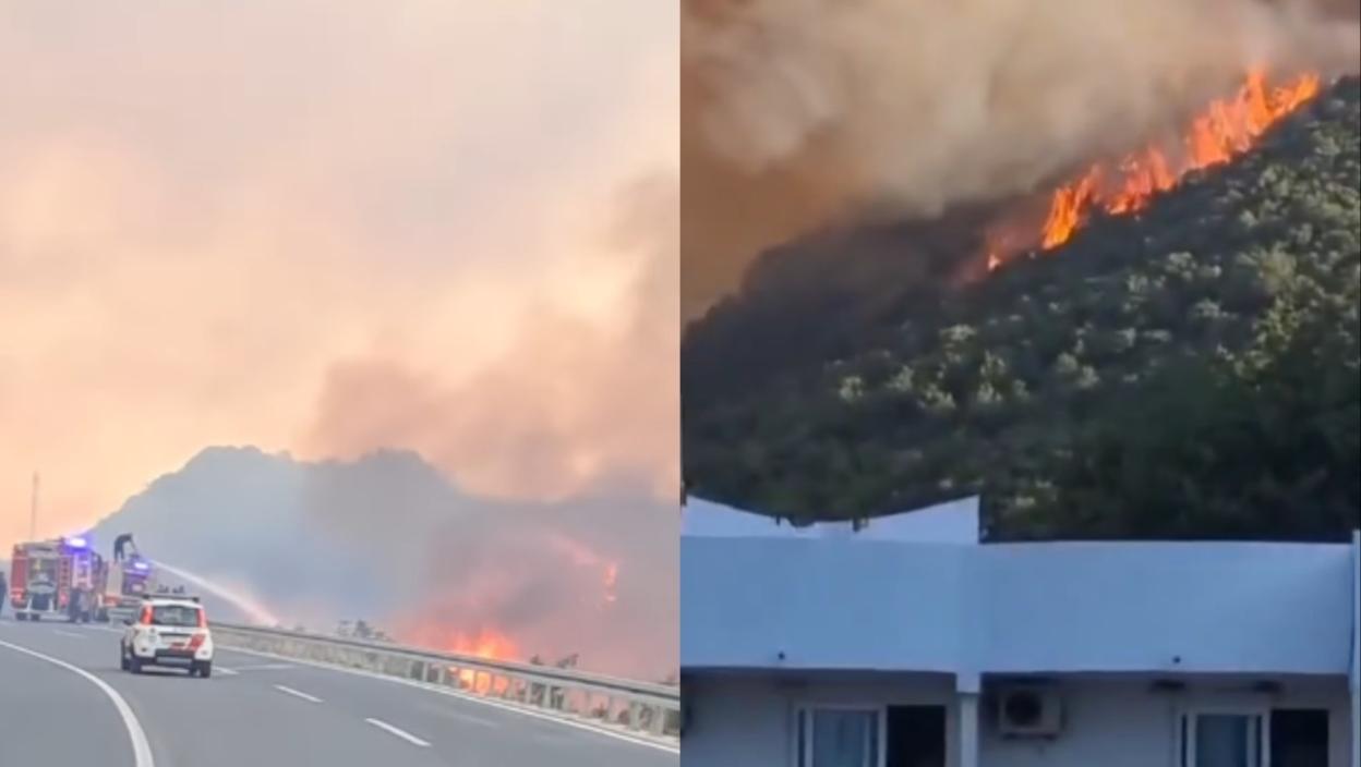 На узнемирујућим фотографијама које људи масовно шерују на друштвеним мрежама, стубови дима дижу се у небо, док ватра гута вегетацију на падини изнад пута. Аутомобили пролазе опрезно, а возачи и путници држе дах пролазећи поред ужареног пакла.
