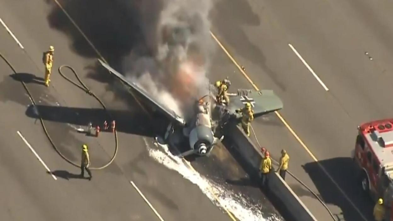 Трофејни авион "фоке-вулф" у бојама Луфтвафеа срушио се и изгорео на ауто-путу у Калифорнији, а пилот је из удеса успео да се извуче неповређен.