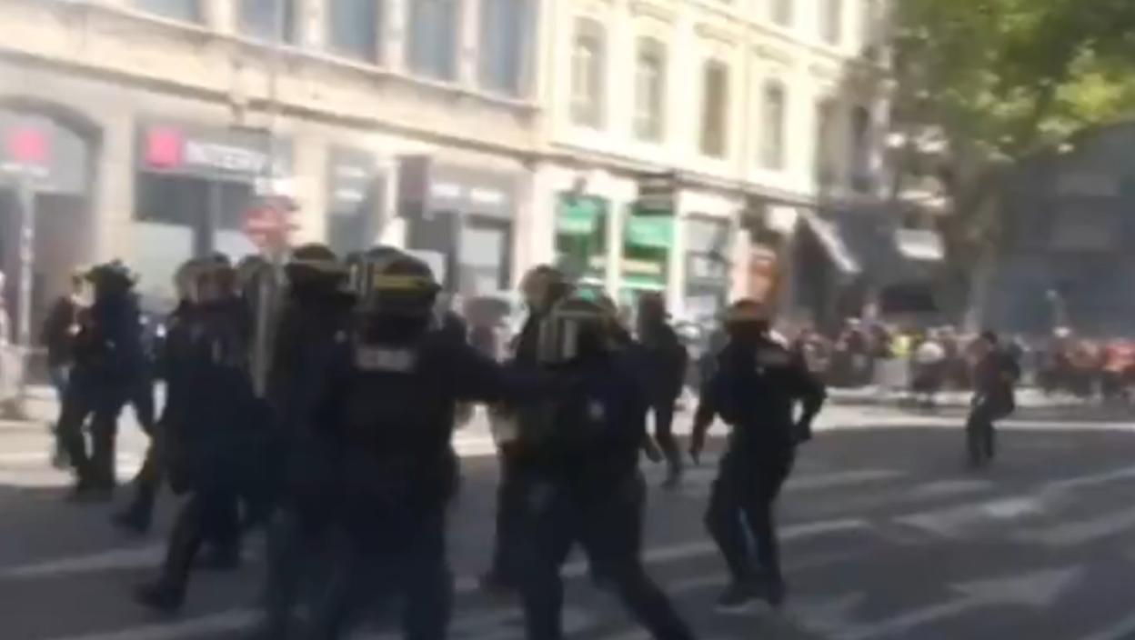 У Лиону су повређене три особе, међу којима један новинар и један полицајац, када су демонстранти на полицију бацали пројектиле.