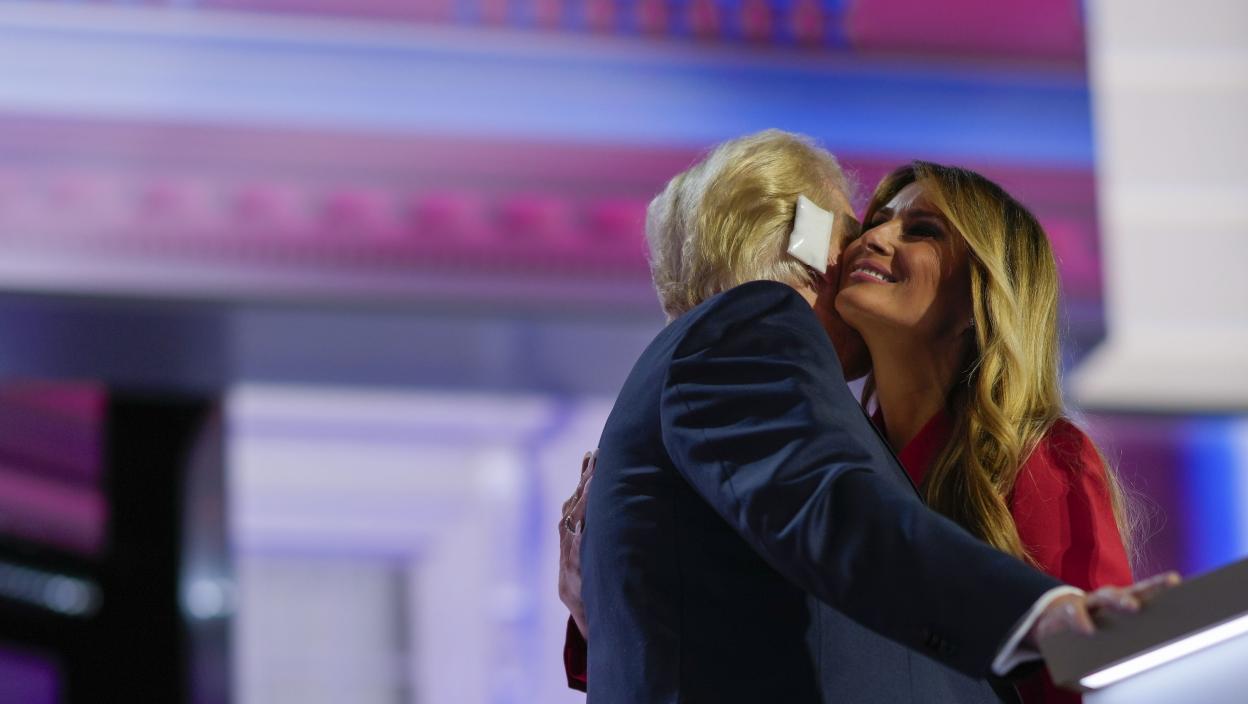 Доналд Трамп је био неуобичајено емотиван док је излазио на сцену, синоћ на Републиканској конвенцији у Милвокију, поделивши нежни загрљај са супругом Меланијом.
