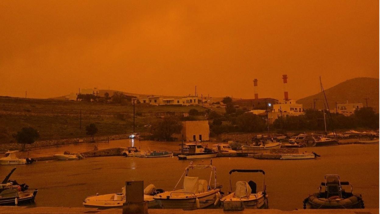Острва Крит и Кикладе суочавају се са озбиљним последицама олује "Ерминио", која је донела велике количине афричке прашине. Видљивост је драстично смањена, небо је попримило наранџасто-црвену боју, а проблеми у ваздушном и поморском саобраћају додатно компликују ситуацију. Стручњаци упозоравају на лош квалитет ваздуха, посебно за осетљиве групе.