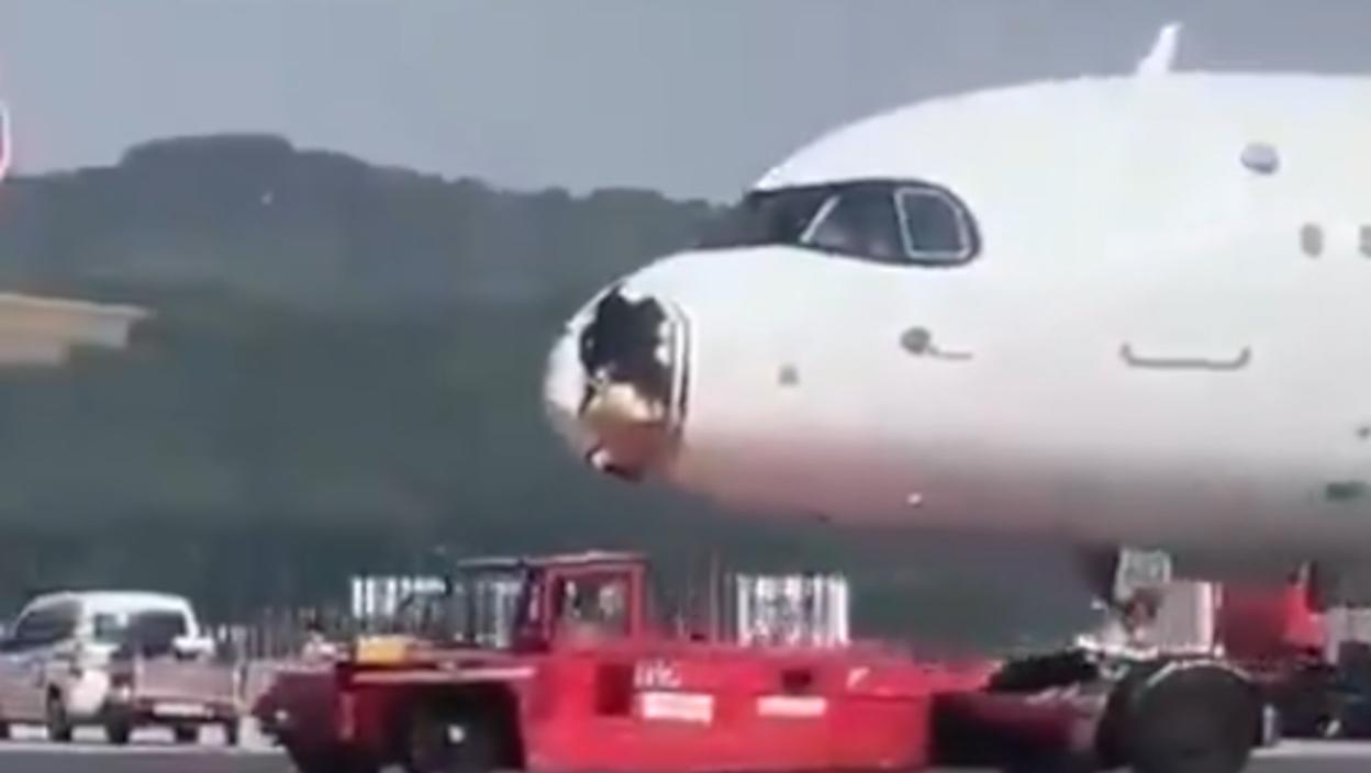 Фотографије са аеродрома показале су да је нос авиона претрпео озбиљна оштећења.