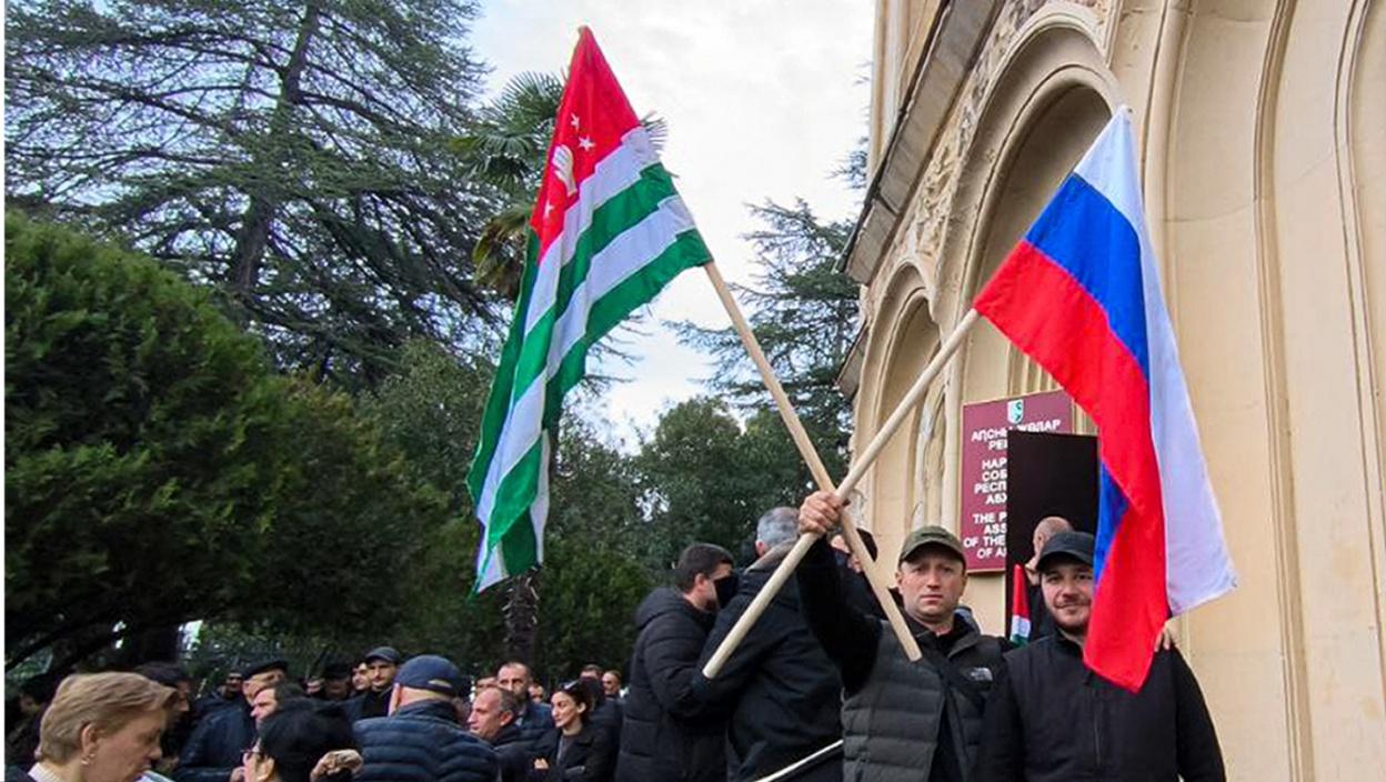 Хаос у Абхазији! Демонстранти преузели кључне институције, председник у бекству - руске заставе изнад парламента! (ВИДЕО)