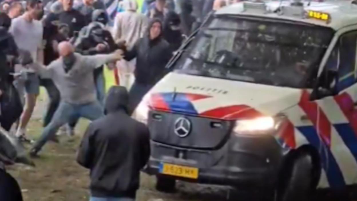 Демонстрације у Хагу које је организовала "Десничарска Холандија (RechtsNederland) против имиграционе политике прерасле су у насилне сукобе између полиције и групе мушкараца.