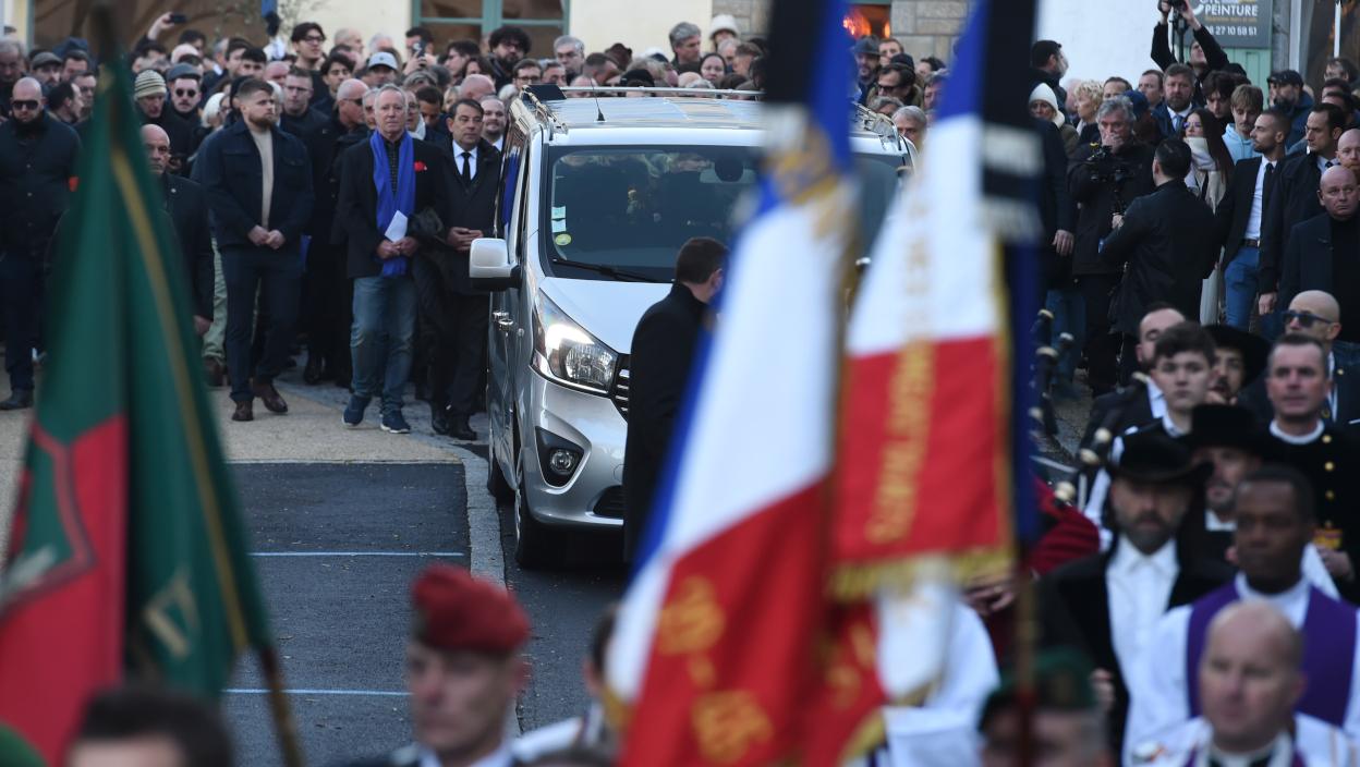 Сахрана је одржана у његовом родном граду на западу Француске, а међу око 200 окупљених била је и његова кћерка Марин Ле Пен, која је преузела руковођење странком пре више од десет година. Странка је у међувремену променила име у Национално окупљање.