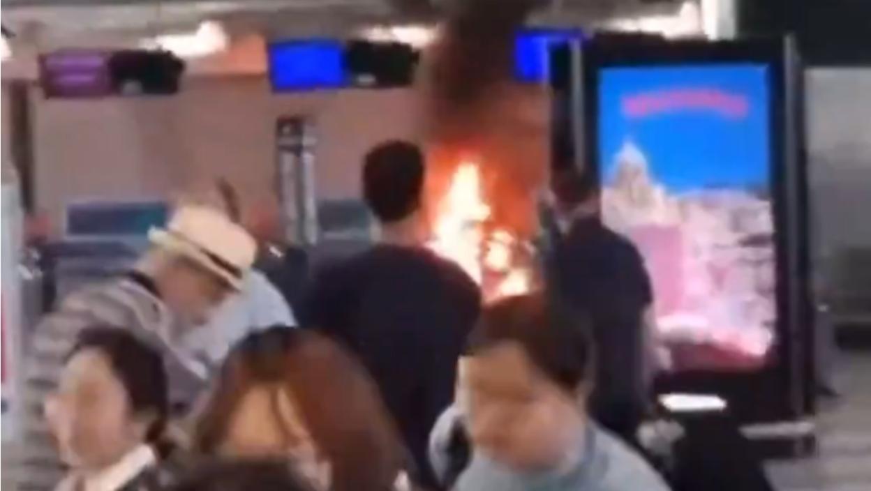 Туристи су данас бежали са међународног аеродрома Малпенса у Миланунакон што је један мушкарац запалио шалтер за пријаве током напада беса, пре него што је савладан и ухапшен, преноси Дејли мејл.