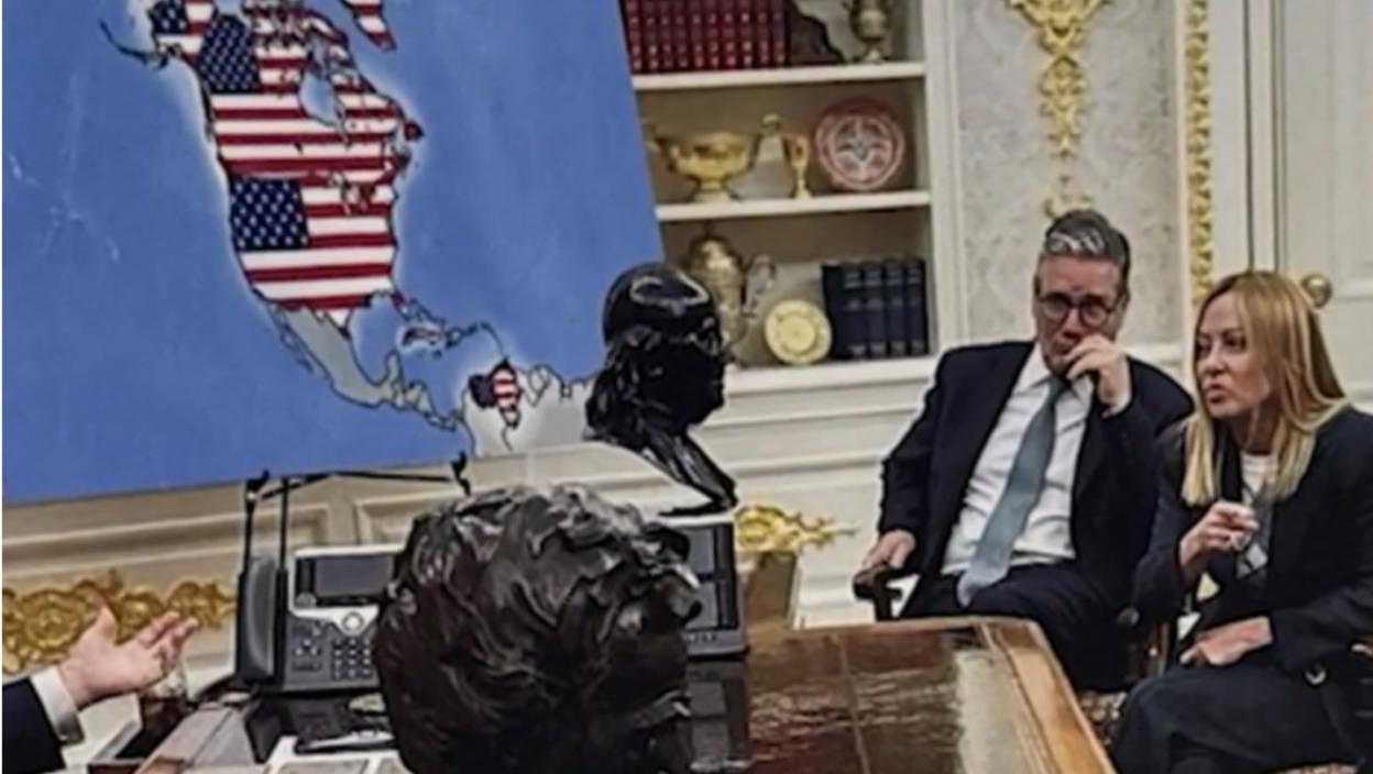 На оригиналној фотографији види се стандардна карта Сједињених Држава, без територијалних промена. У верзији коју је Трумп сада објавио карта је дигитално измењена тако да укључује и Канаду, Гренланд, Венецуелу и Кубу као део САД.