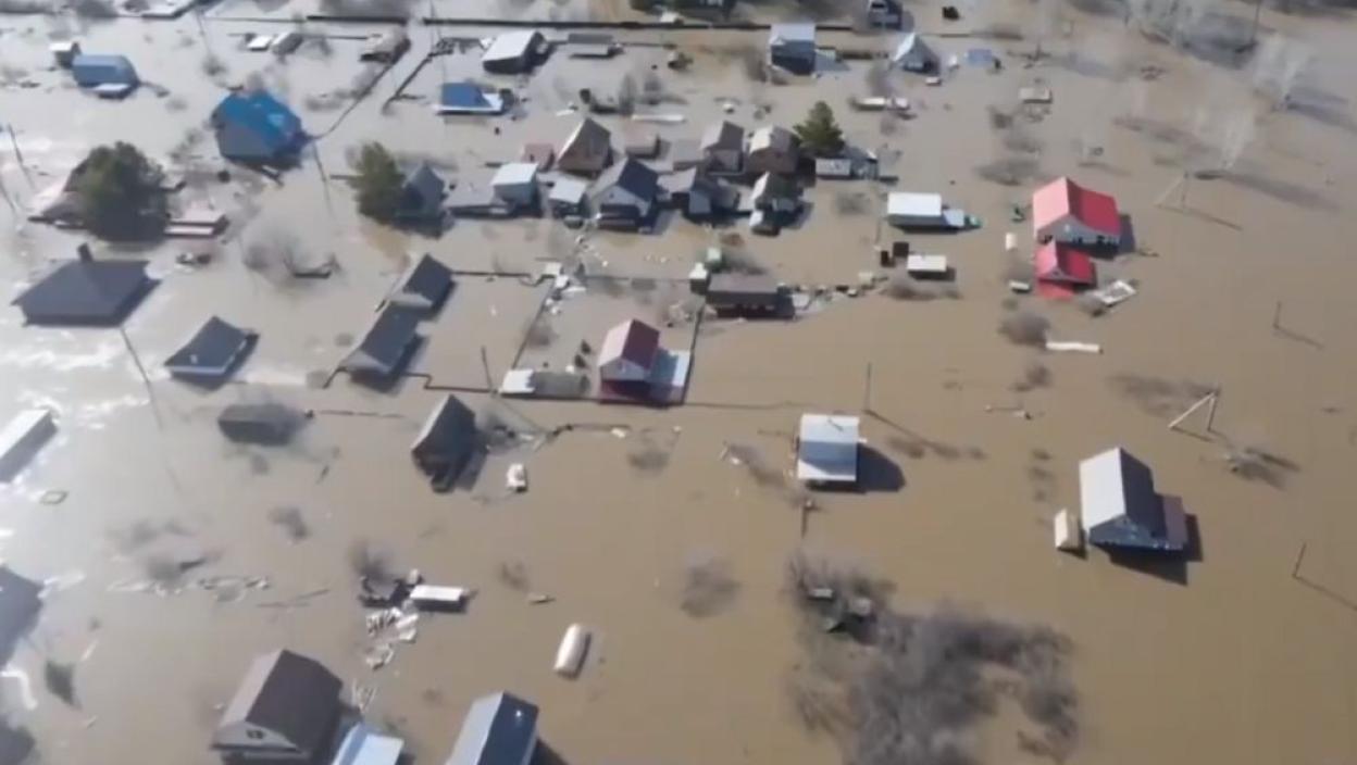 Нови снимци дроном приказују низове кућа и улица под водом у Русији и Казахстану. Евидентирана је и велика материјална штета. Нека од поплављених подручја су важна за производњу пшенице, а Русија је њен највећи извозник на свету.