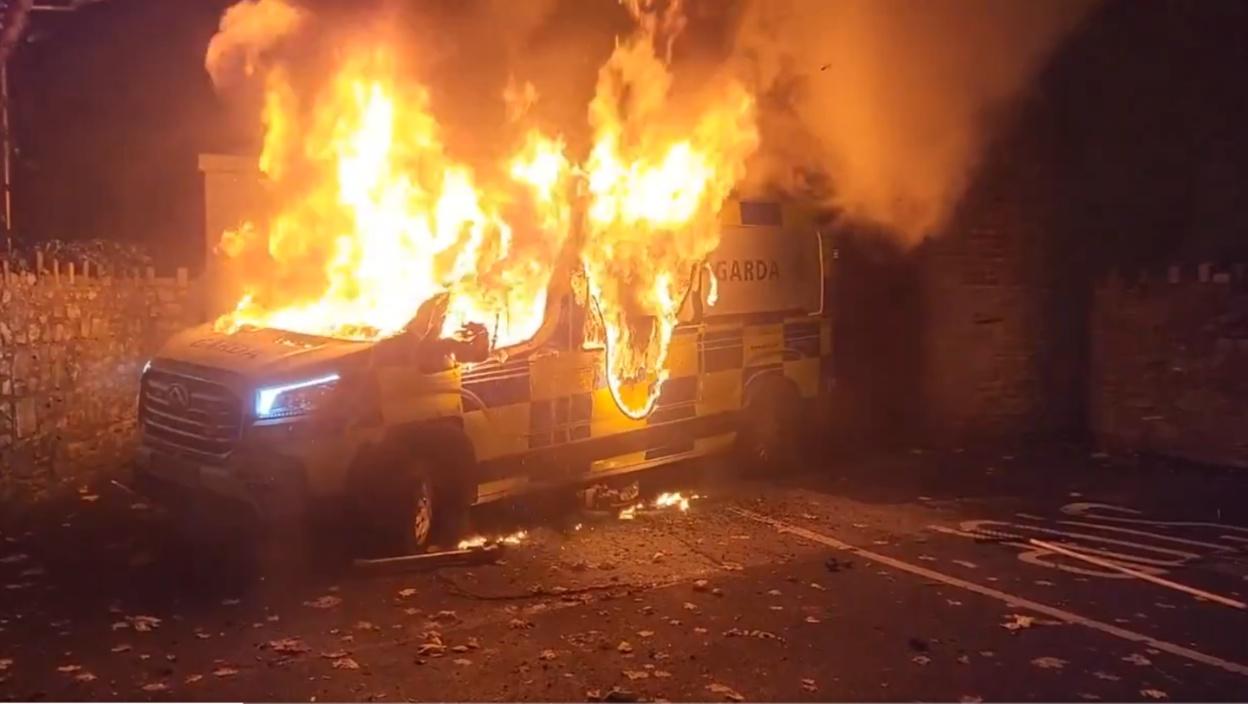 У главном граду Ирске, Даблину, синоћ је било великих нереда испред хотела за азиланте, а осим што је запаљено полицијско возило, демонстранти су носили чак и виле на окршај са полицијом!?