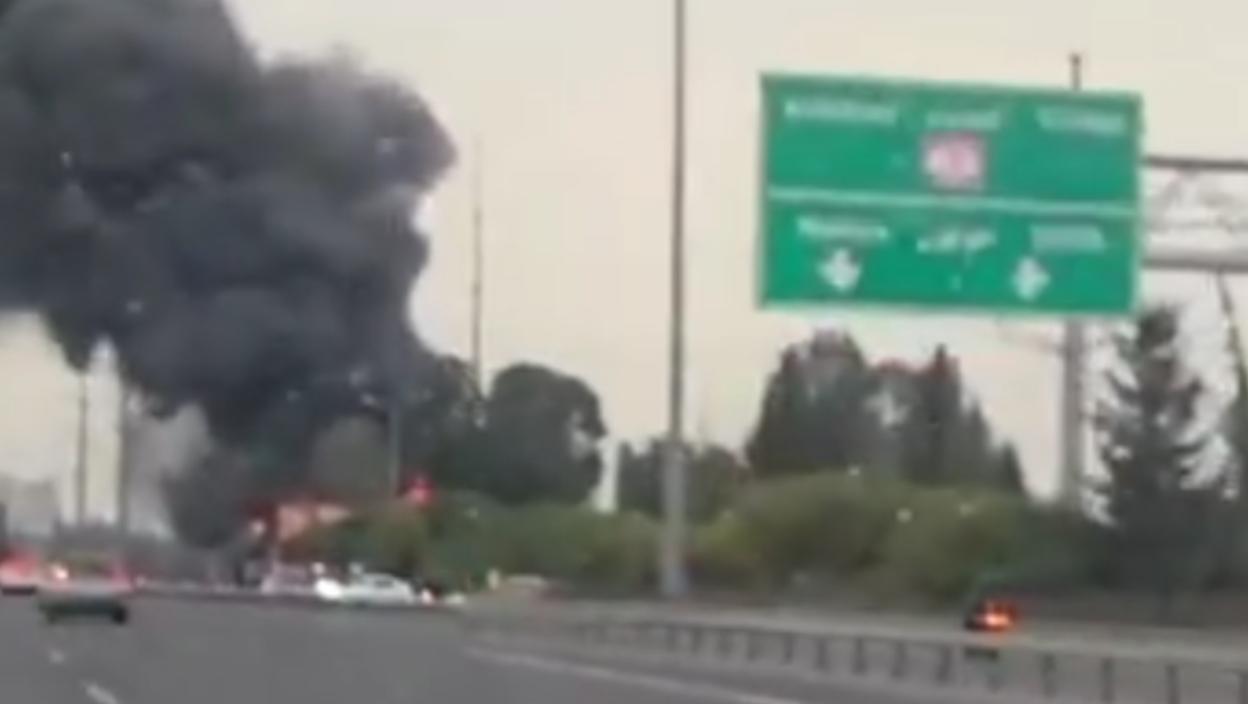 Ал Арабија преноси да се на лицу места видео густ црни дим како куља у небо из, како се чини, запаљеног складишта на једној од локација у близини ауто-пута.