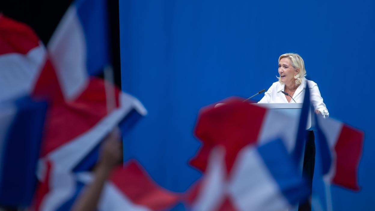 Лидерка француске крајње десничарске странке Национално окупљање (РН) у парламенту Марин Ле Пен позвала је јуче на распуштање Скупштине.