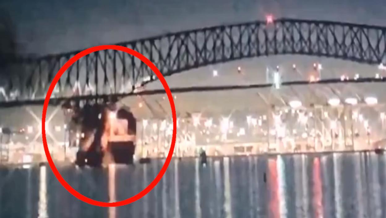 На снимку се види како велики део дугог моста Френсис Скот Ки пада у воду након судара.