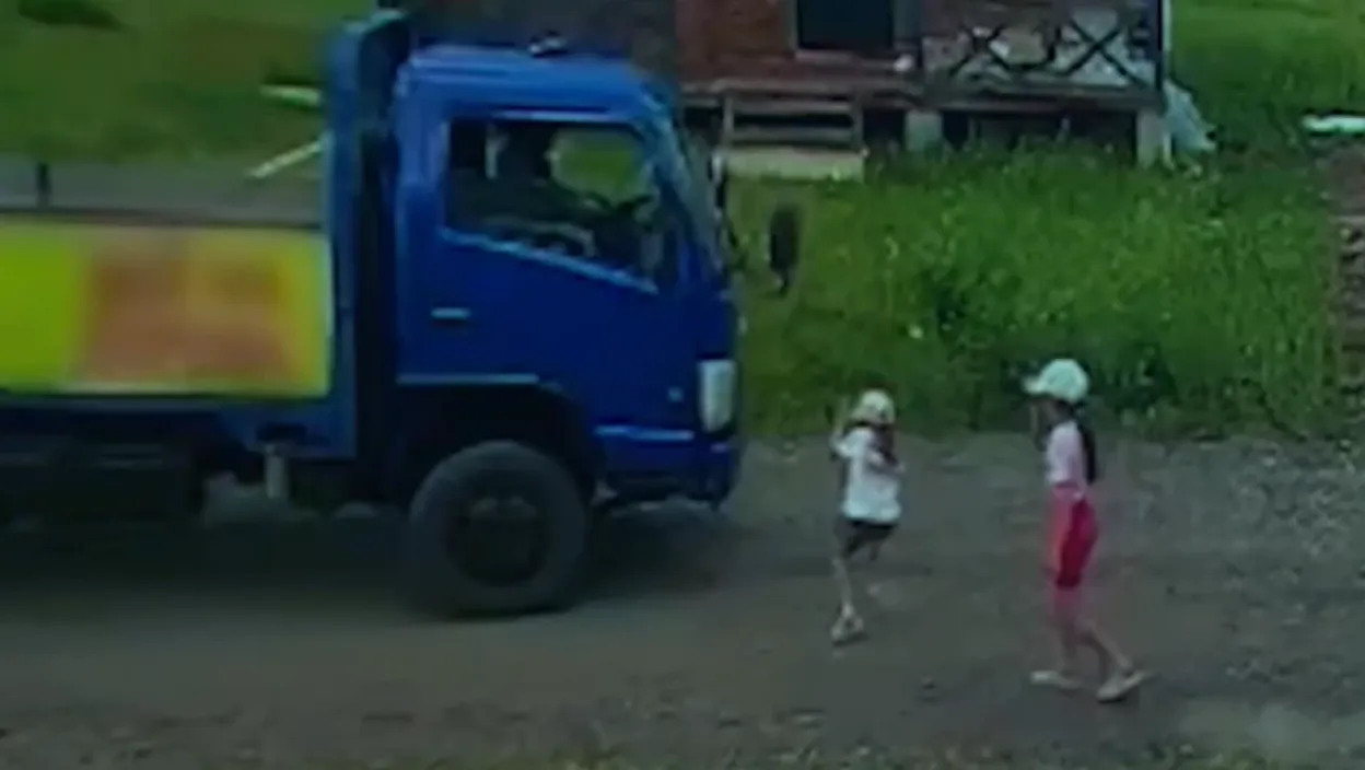 Девојчица је изненада истрчала на пут тачно испод точкова тешког возила док се играла са својим пријатељима.