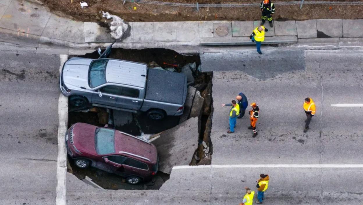 Водоводна цев је пукла након што су аутомобили упали, а Полицијска управа Омахе саопштила је да очекује да пут буде затворен неколико дана, упозоравајући да се понор може проширити.