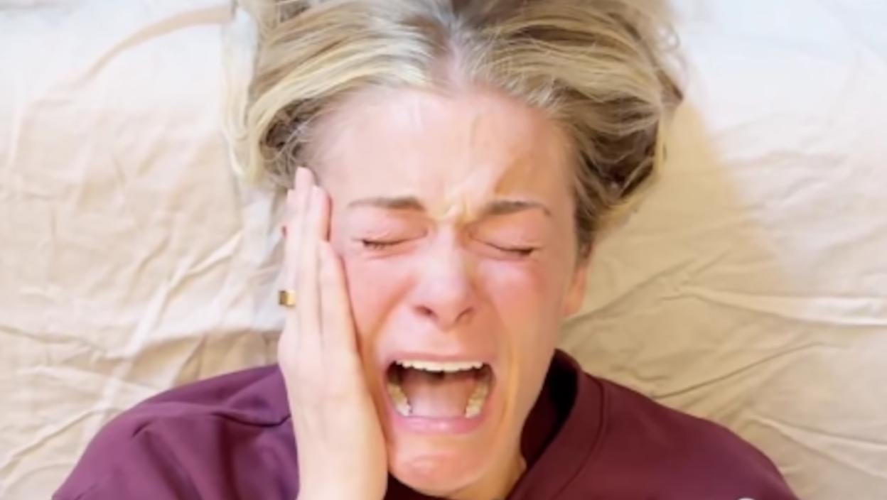 На снимку објављеном на Инстаграму, који има 2,8 милиона прегледа, Ли Ен Рајмс (43) је у сузама након што особа са рукавицама изводи оно што је у опису названо "дубоко опуштање вилице".