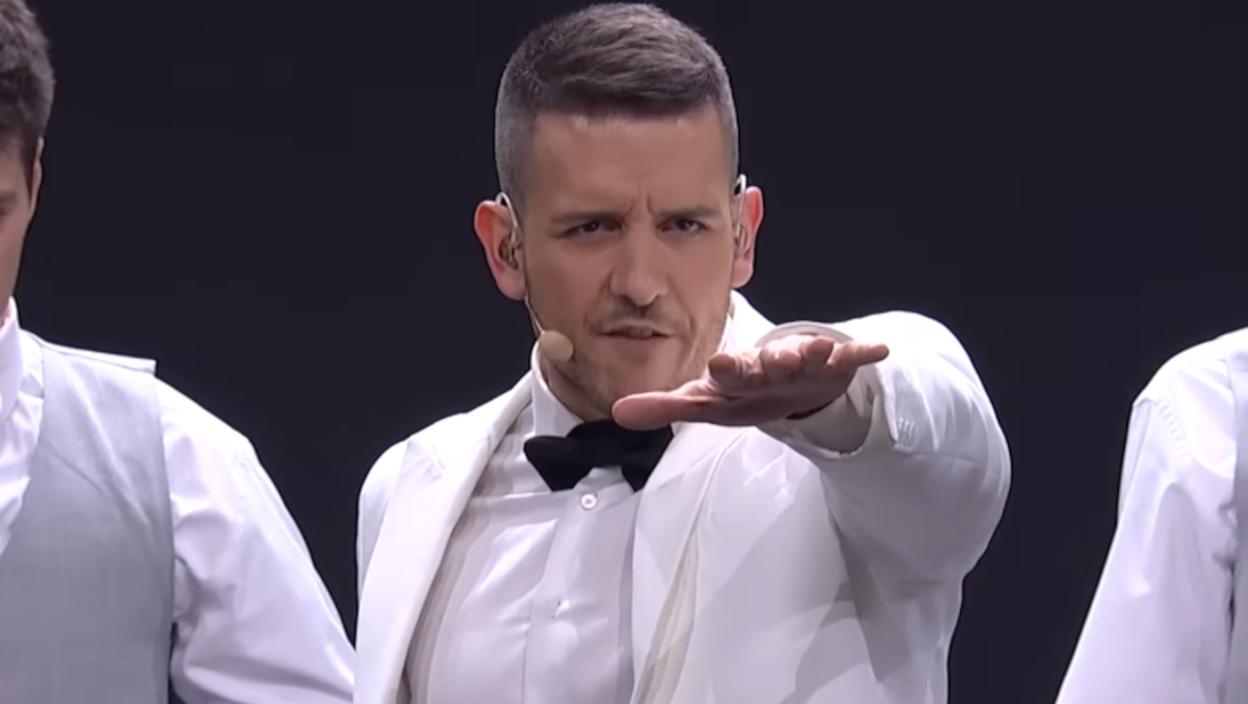 Брат Пелин је извео енергичан и визуелно упечатљив наступ са песмом, уз пратњу плесача у елегантним сивим оделима.