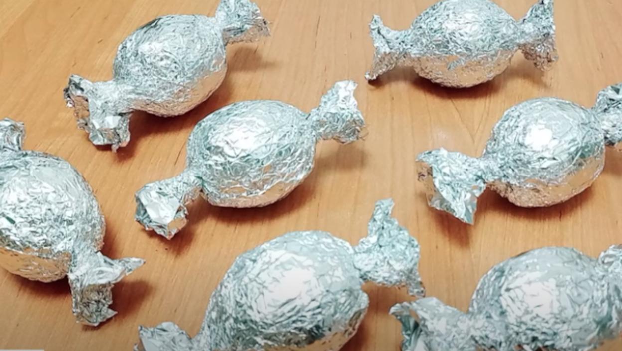 Исцепкајте фолију на правоугаонике, па на средину ставите 4 туфера и мало их преклапајте.