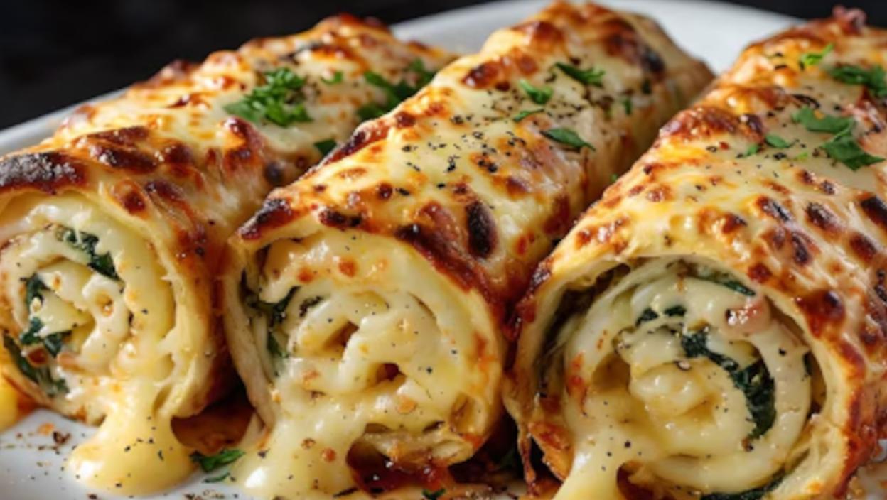 Преко целе испечене коре намажите освежавајућ фил од спанаћа, па увијте у ролнице. Уваљајте у презле и јаје, те благо испржите на маслиновом уљу, тек да добију корицу. Пријатно!