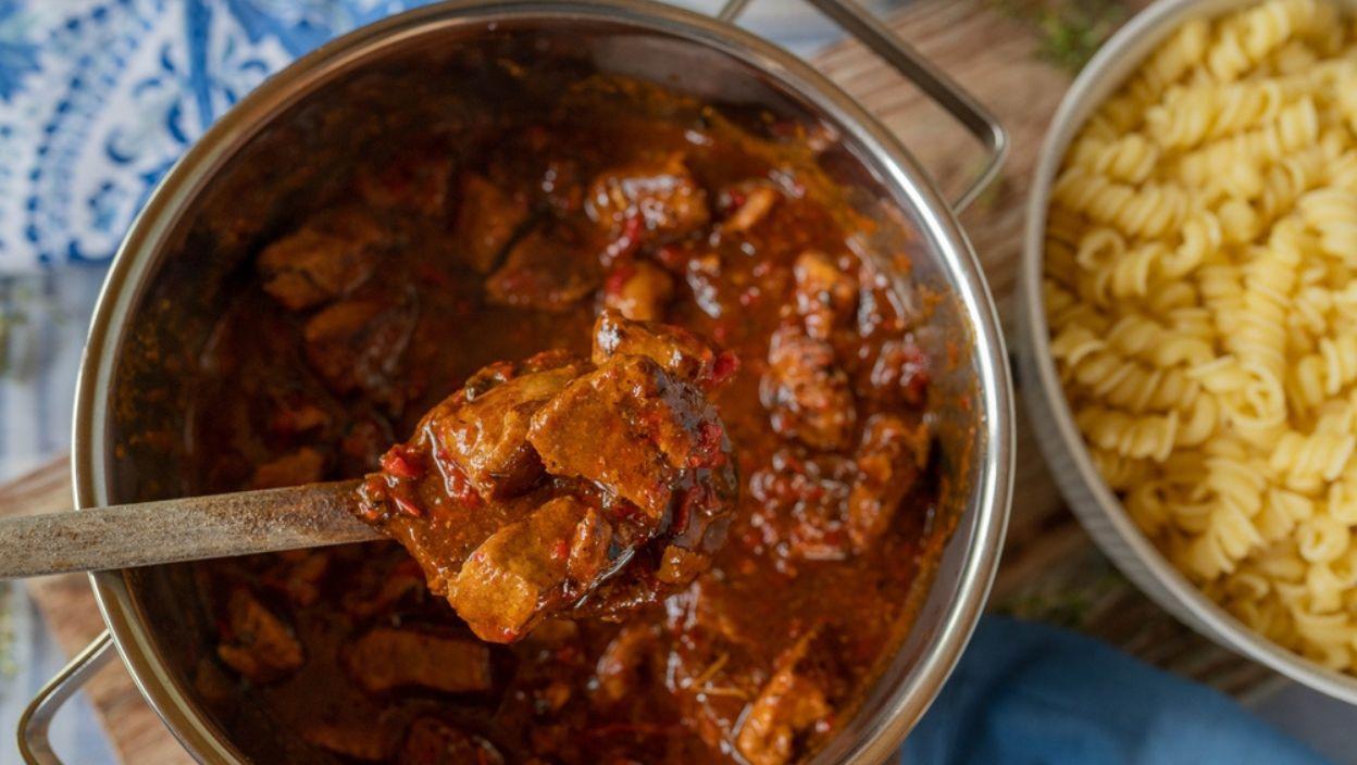 Овај гулаш је савршен за хладније дане када желите нешто што ће вас загрејати и напунити енергијом. Можете га послужити уз кувани кромпир, пиринач или макароне, а у друштву породице или пријатеља, уживаћете у сваком залогају.