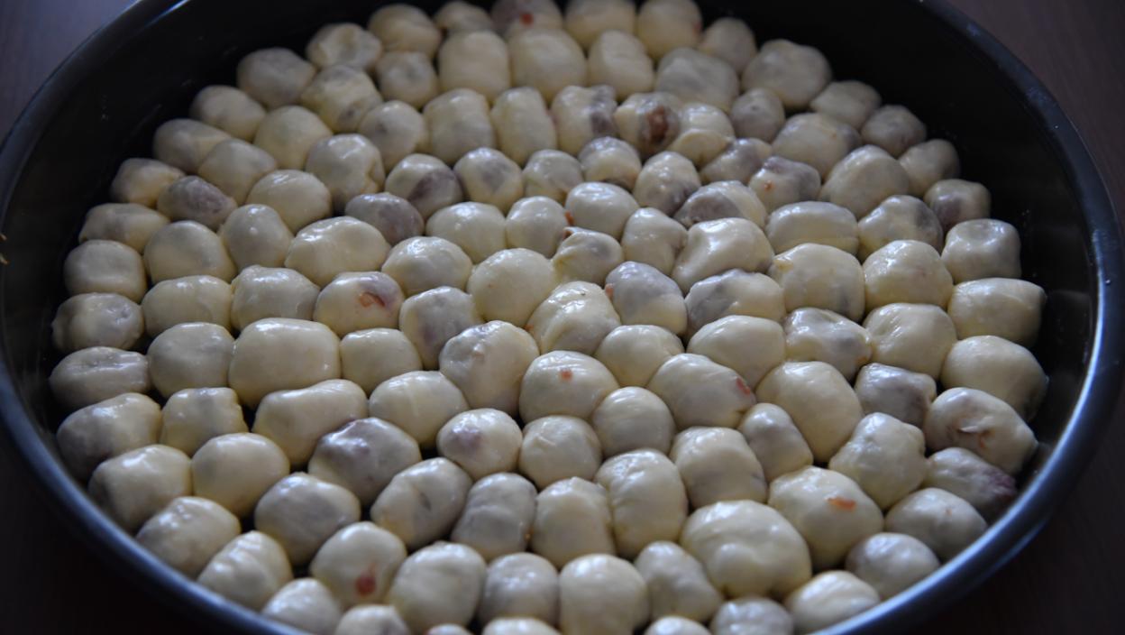У просејано брашно додајте со, уље и млаку воду, па замесите тесто. Тесто ставите у науљену посуду и покријте провидном фолијом и оставите да одстоји пола сата. У међувремену направите фил и масноћу.