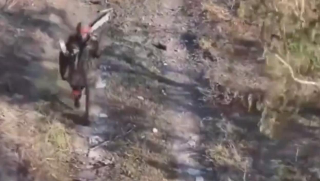 Snimak ukrajinskog drona koji je naterao na predaju ruskog vojnika.
