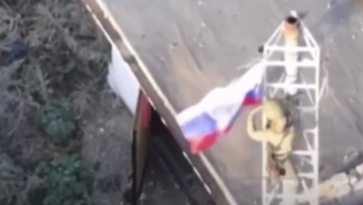 Na snimcima objavljenim na društvenim mrežama vidi se kako ruski vojnici mašu zastavom sa vrha bombardovane višespratnice i razvijaju drugu zastavu na metalnom tornju na krovu.