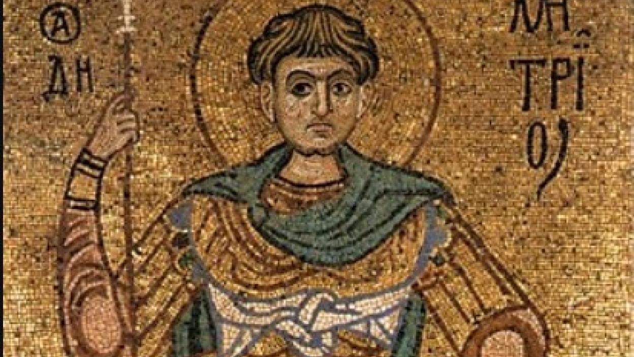Sveti velikomučenik Dimitrije Solunski rođen je u Solunu u 3. veku nove ere, gde je postavljen na očevo mesto za vojvodu. Zadatak mu je, takođe, bio da progoni hrišćane. Međutim, on ih je štitio i zato bio osuđen na smrt. Rimski vojnici izboli su ga kopljima početkom 4. veka.