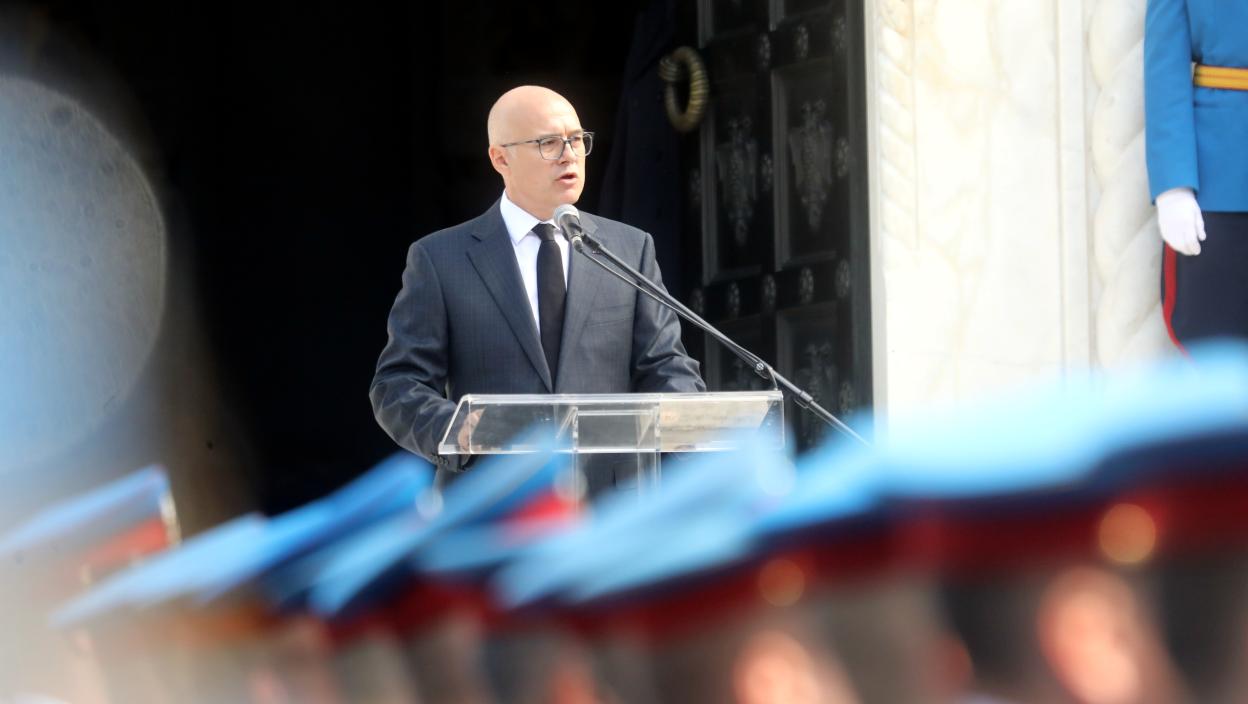 Predsednik Vlade Srbije Miloš Vučević prisustvuje državnoj ceremoniji polaganja venca i odavanja počasti povodom 90 godina od smrti kralja Aleksandra Prvog Karađorđevića na Oplencu.