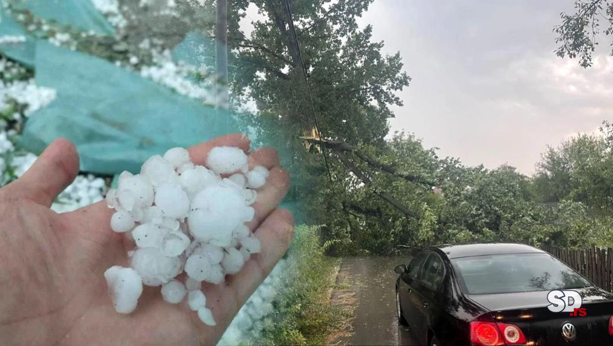 Na fotografijama koje kruže društvenim mrežama se može videti da je grad, veličine teniske loptice, pogodio Sremčicu.
