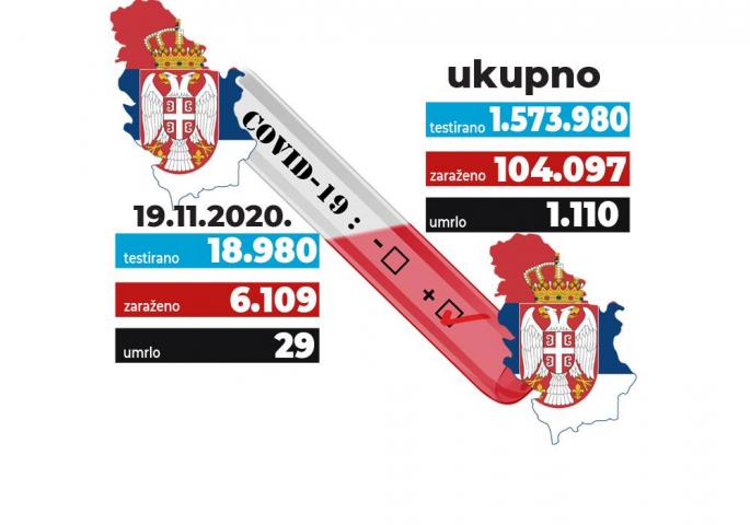 U poslednja 24 sata na korona virus u Srbiji je testirano 18.980 građana. od kojih je 6.109 pozitivno.