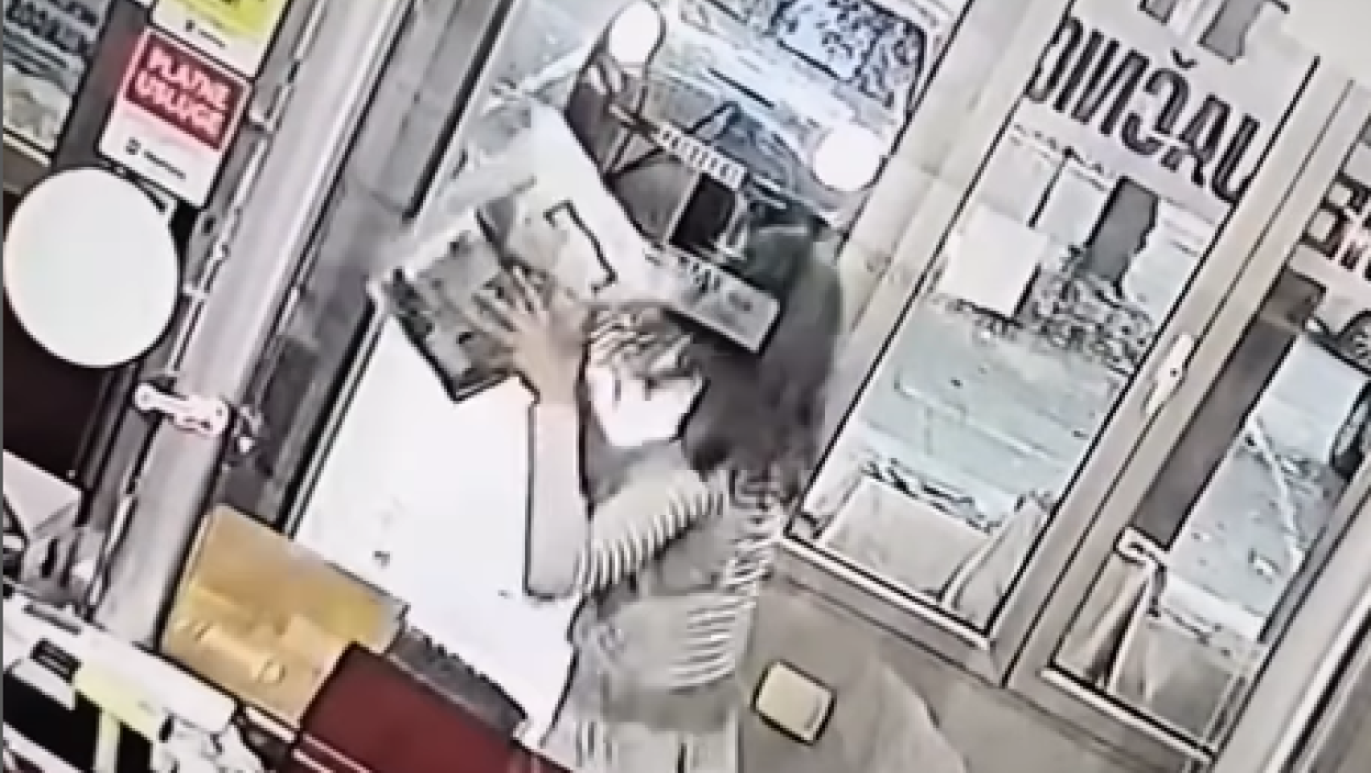 Na snimku se vidi kako jedna od njih ulazi u menjačnicu, zgrabi kutiju i istrči napolje, dok druga ostaje ispred vrata, delujući kao da pokušava da je odvrati od krađe.