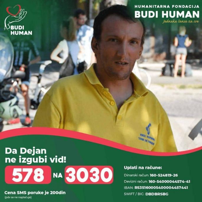 Dejanu možete pomoći uplatom na dinarski račun: 160-524819-26