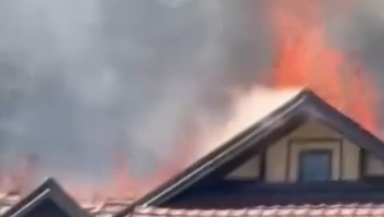 Plamen guta krov hotela, a kako se vidi na snimcima, vatra bukti iz objekta.