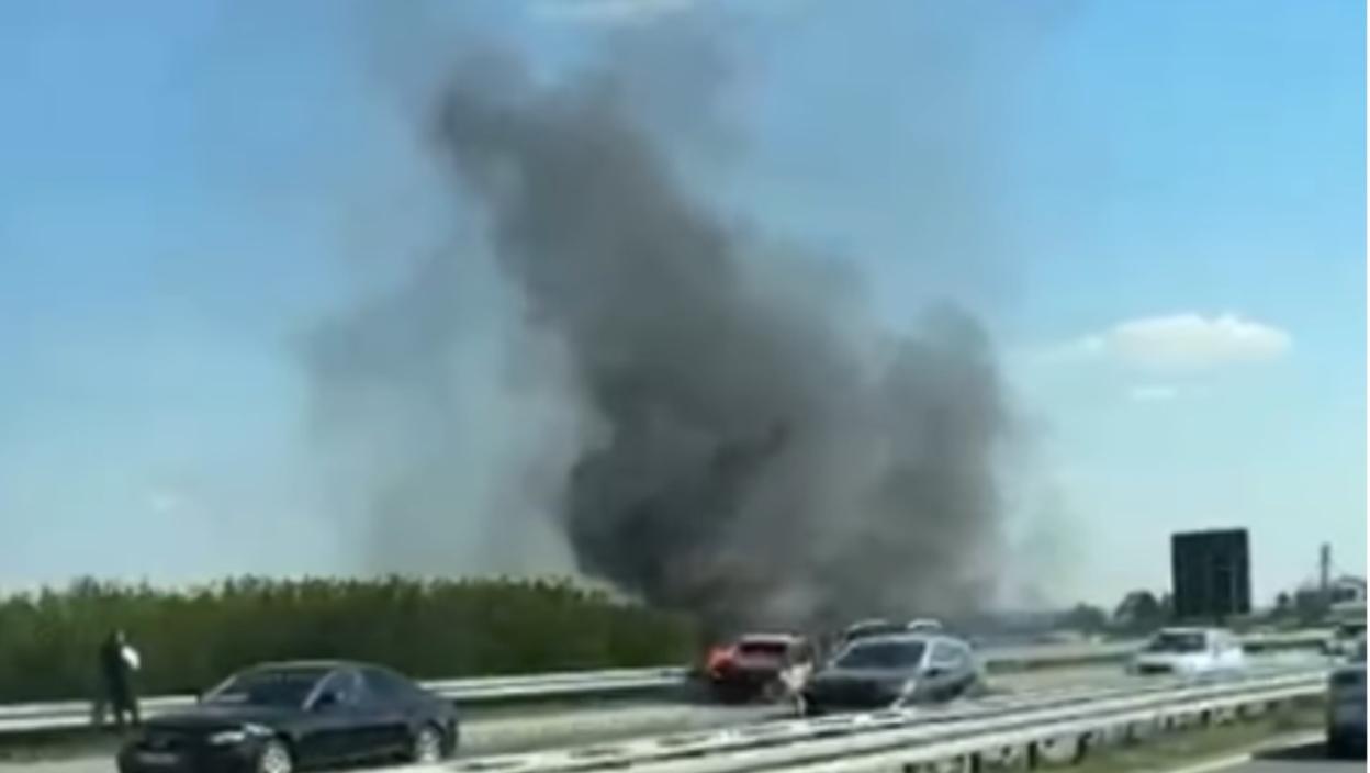 Vatrena stihija guta automobil na "Milošu Velikom": Crni dim kulja u nebo, saobraćaj usporen (VIDEO)