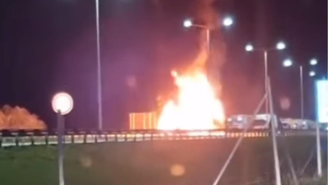Bukti vatra na auto-putu: Gori kamion, plamen se ŠIRI na sve strane - JEZIVE scene sa lica mesta (VIDEO)
