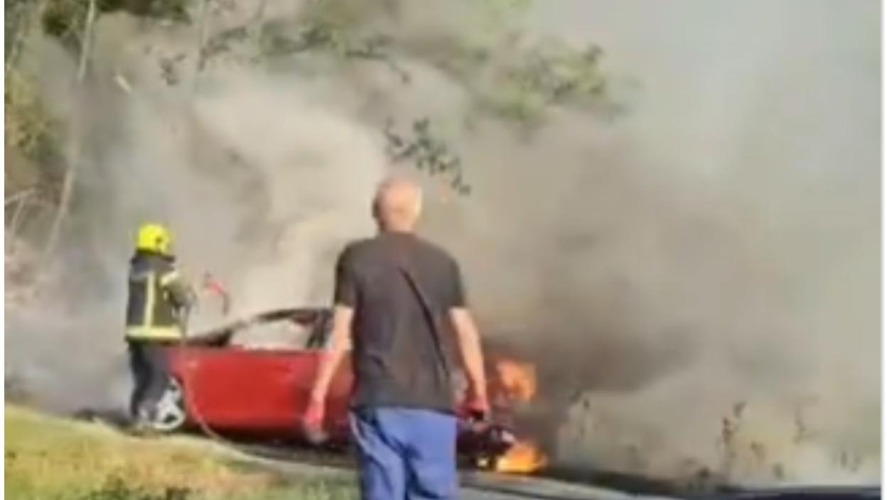 Haos kod Čačka: Automobil u plamenu, vatrogasci na mestu nesreće (VIDEO)