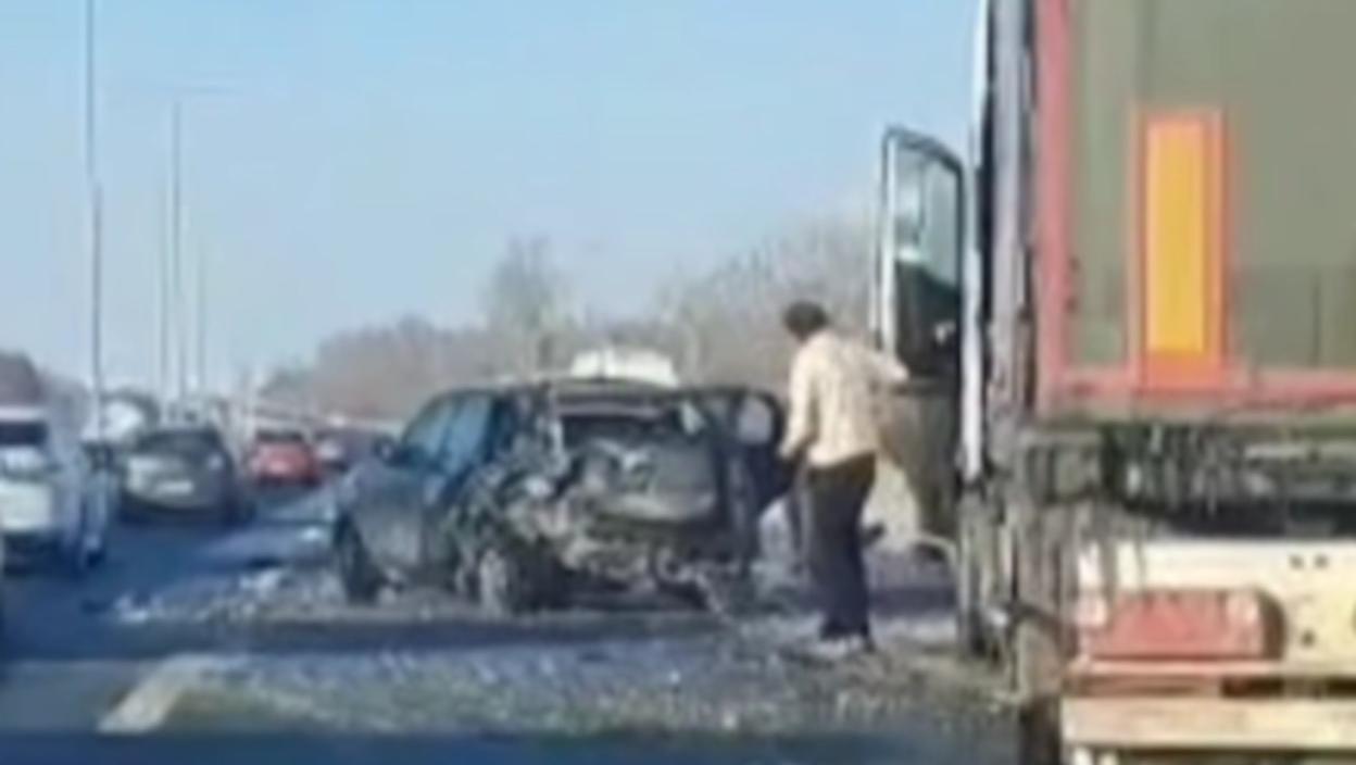 Haos na mostu: Težak udes u smeru ka Novom Sadu, automobil potpuno uništen - u njemu bila porodica sa decom (VIDEO)
