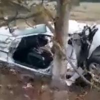 Kako se vidi na fotografijama i video snimcima sa lica mesta, automobil je u potpunosti zgužvan.