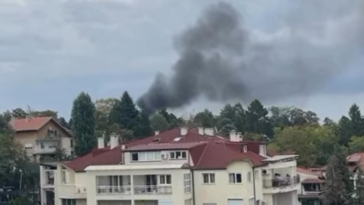 Nedaleko od Belog dvora, u pravcu Vojne akademije u Beogradu na Senjaku, snimljen je crni, gust dim koji se širi tim delom grada.